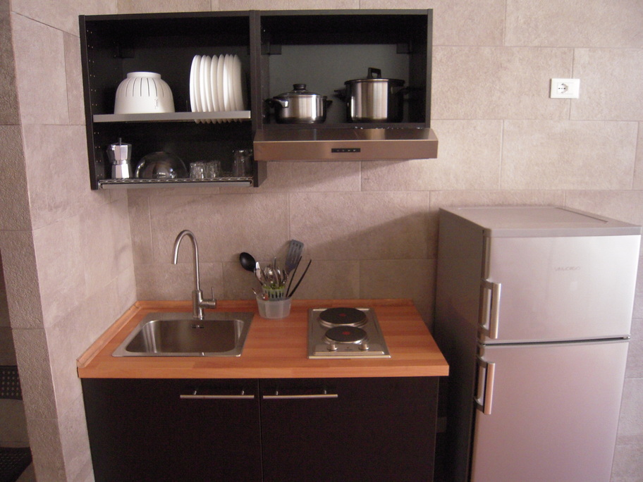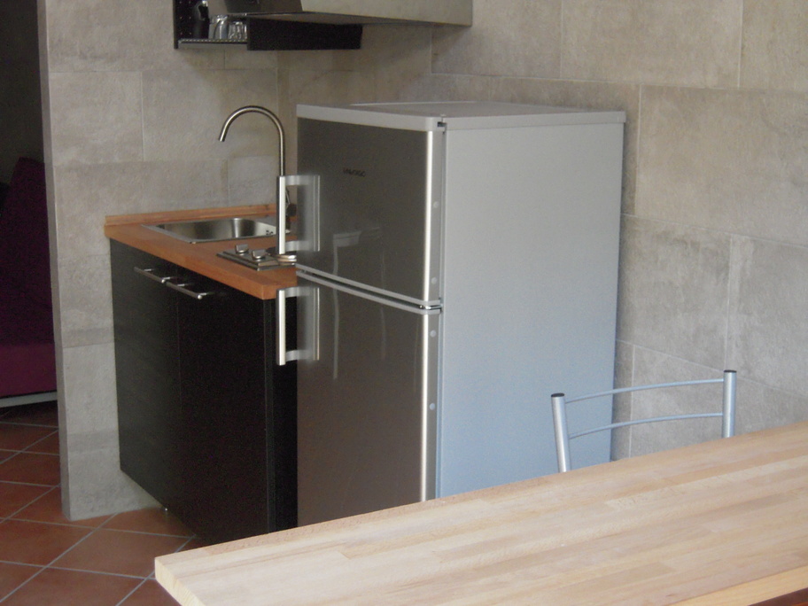 Lovely and bright studio with loft, located on the ground floor of the main street. It is ideal for a family of 4 persons, but it can host up to 6 persons. It has a cooking area, a double bed, 2 double couch bed and a bathroom with all comforts (toilet, bidet and shower).
